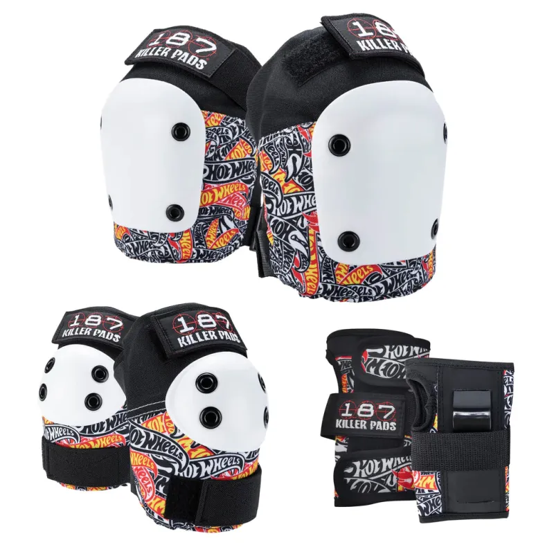 Cada conjunto presenta gráficos y detalles personalizados de Hot Wheels™, además de la protección y la artesanía inigualables incorporadas en cada conjunto de 187 juegos de almohadillas Six Pack: la elección de más patinadores profesionales que cualquier otra marca.