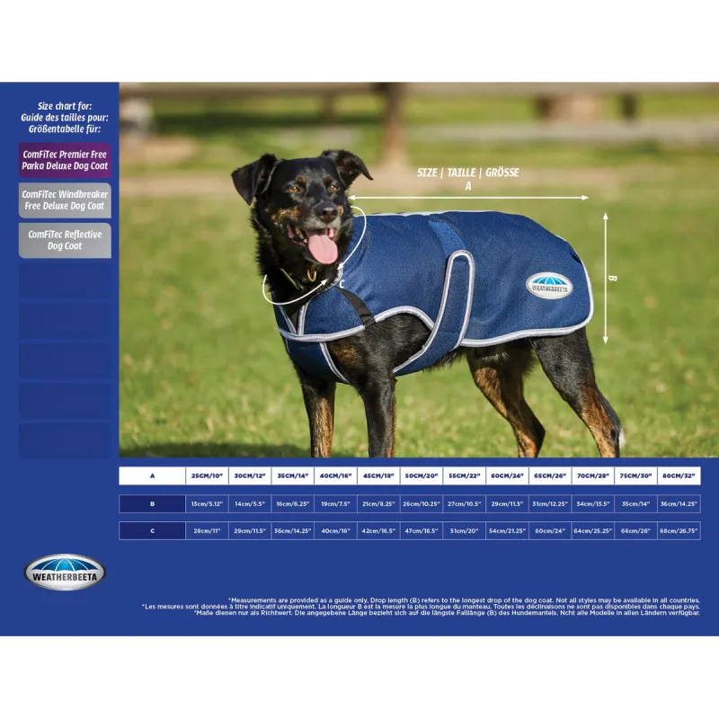 Abrigo Perro Impermeable Comfitec Premier Free Deluxe Medium Azul Oscuro Gris Blanco Weatherbeeta