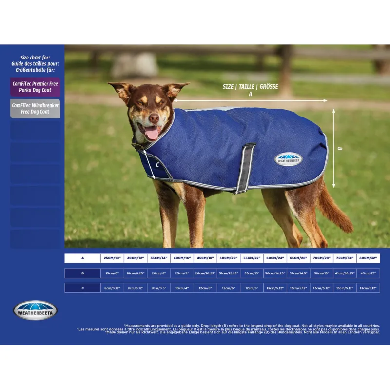 Abrigo Perro Impermeable Comfitec Premier Free Medium Azul Oscuro Gris Blanco Weatherbeeta