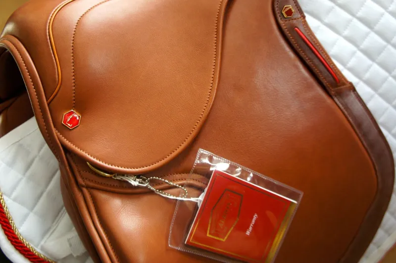 Montura Equitación Salto. Albion Saddlemakers lanzó con orgullo su montura «Revelation» de la la gama Couture como muy exclusiva en 2011, que incluía una montura de doma, un modelo de cross country y el espectacular modelo de salto. En otoño de 2013, debido a la demanda lanzamos Revelation Red Label, donde por medio de la linea Couture Saddles se incluye la opción de poder adornar con cristales Swarovski y Charol diseñado por el jinete. Además de poder seleccionar entre otras opciones los tacos de la rodilla con los nuevos sistemas de montaje de precisión Albion para ajustar a la medida del caballo y del jinete.