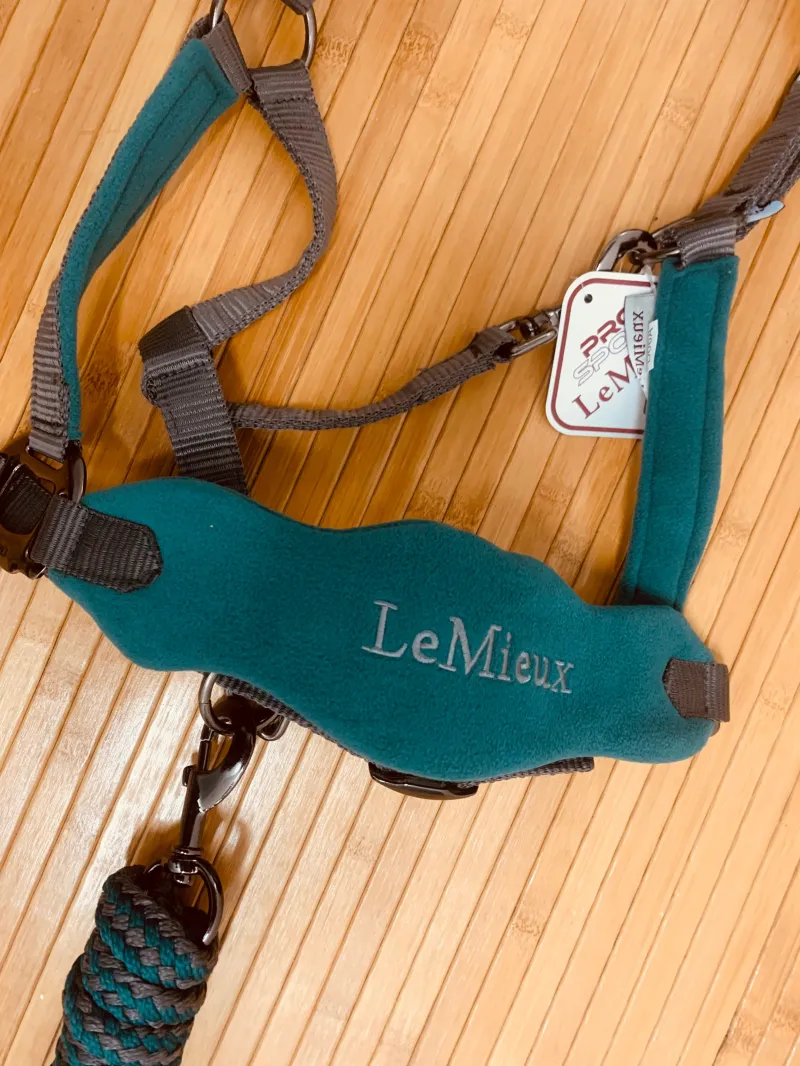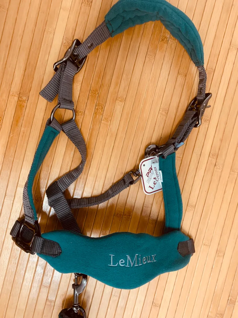 Cabezada con acolchado y ronzal a estrenar color verde agua