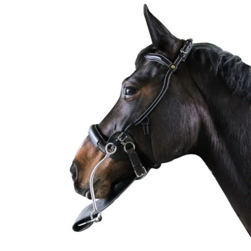 Especialmente diseñada sin muserola para permitir la correcta colocación de la embucadura tipo Hackamore. Cabezada de trabajo ergonómica fabricada en cuero italiano de plena flor con resistentes costuras en color blanco roto. Su diseño garantiza una adaptación perfecta a la cabeza del caballo, evitando tensión en la nuca, gracias a la amplia testera acolchada con silicona. Con largas carrilleras laterales, que no interfieren con la vista del caballo, gracias a su diseño ergonómico. El diseño del ahogadero ha sido cuidadosamente desarrollado, para evitar la caída accidental de la cabezada. Se vende con riendas a elegir entre: