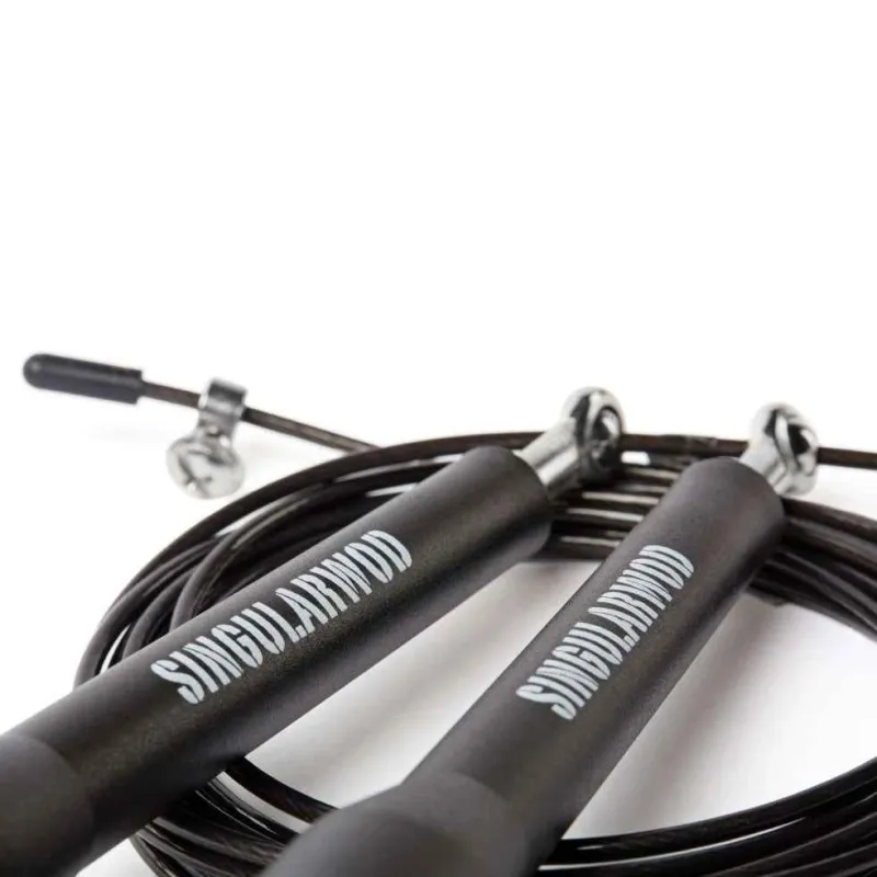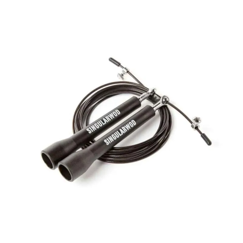 La Comba de SINGULARWOD está diseñada para maximizar la eficiencia y la velocidad en cada salto. Con un mango de polímero plástico suave al tacto y un cable de acero recubierto, es ideal para resistir golpes y arañazos durante los entrenamientos intensos. ¡Perfecta para que los dobles salten solos!