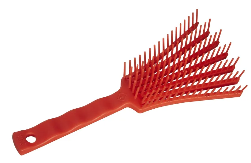 El unico peine flexible para el caballo. No hay que pelear con un nudo o con un enredo! 7 únicos filas de peine flexibles, se doblan hacia fuera y se cierran automaticamente, suelta suavemente incluso el más grande de los enredos! Ideal para crines y cola