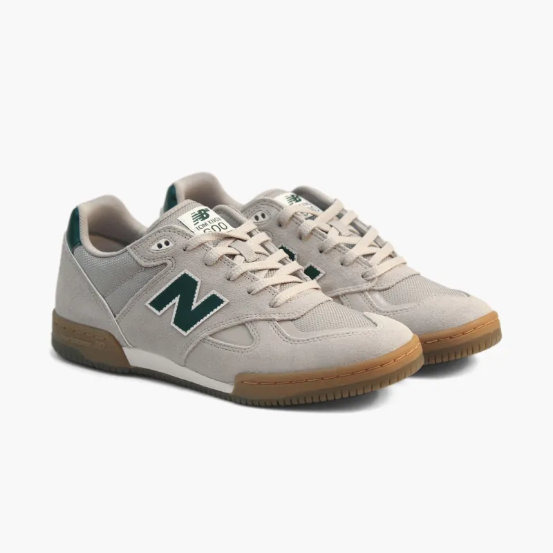 Las New Balance Numeric NM600 son el primer promodel de Tom Knox. El modelo NM600 es una actualización de una zapatilla del catalogo de New Balance de los 90, adaptada a las necesidades del skater reforzando la durabilidad y la comodidad. Las bases de cuero refuerzan la durabilidad, lo que ofrece la mejor resistencia posible ante el desgaste y deterioro. Con paneles de mesh para ofrecer un buen flujo de aire, esta zapatilla es la elección ideal para disfrutar de una gran fiabilidad y transpirabilidad. La suela de tres piezas esta realizada con tecnología NDurance y la parte central es de la espuma FuelCell ofreciendo mayor absorción de impacto. Este colorway está hecho en suede premium de color gris claro con suela de color gum y con detalles y acentos en blanco y verde. La puntera, el talón y los laterales son en suede premium y la N lateral es de cuero verde con reborde blanco y la parte superior del talón es en cuero del mismo color verde, el interior de la zapatilla es en gris también. Las plantillas también tienen tecnología Ortholite, un Eva que ofrece comodidad y flexibilidad sin sacrificar tacto. El nombre de Tom Knox aparece en la lengüeta tipo calcetín.