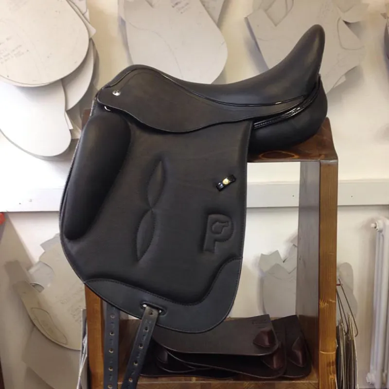 Con un diseño monofaldón y largas correas para la cincha, esta silla de montar de Doma proporciona el máximo contacto entre la pierna del jinete y la caja torácica del caballo, así como una reducción del peso de la silla. Recubierta de suave piel de ternera de grano completo, especialmente desarrollada para facilitar el agarre y mantener la estabilidad de las piernas del jinete. Esta silla de montar permite personalizar los bordes delanteros y traseros, los ribetes de unión, los pasadores para los estribos y las costuras, en diferentes colores, para disfrutar de una montura exclusiva.