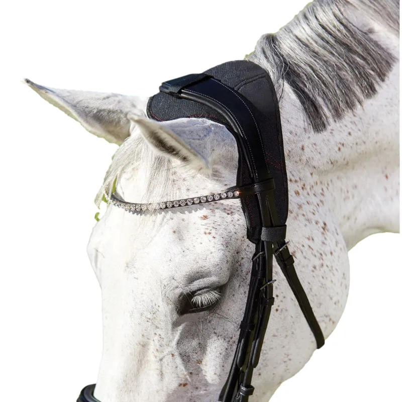 Pensado para aliviar la tensión muscular y la sensibilidad detrás de las orejas. Fácil de colocar gracias a tres tiras de velcro con las que se rodea la testera de la cabezada y queda situada por debajo cuidadosamente. Hecha de Neopreno transpirable que absorve bien la humedad.