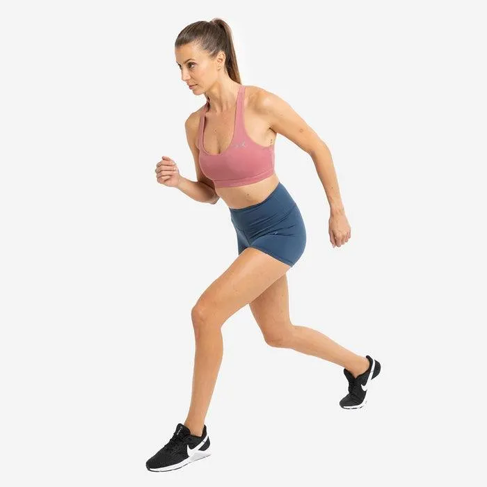 Sujetador deportivo de sujeción ligera con almohadillas extraíbles, escote abierto redondo y tirantes ancho que se juntan en un en la parte posterior. Tejido ajustado y flexible.
